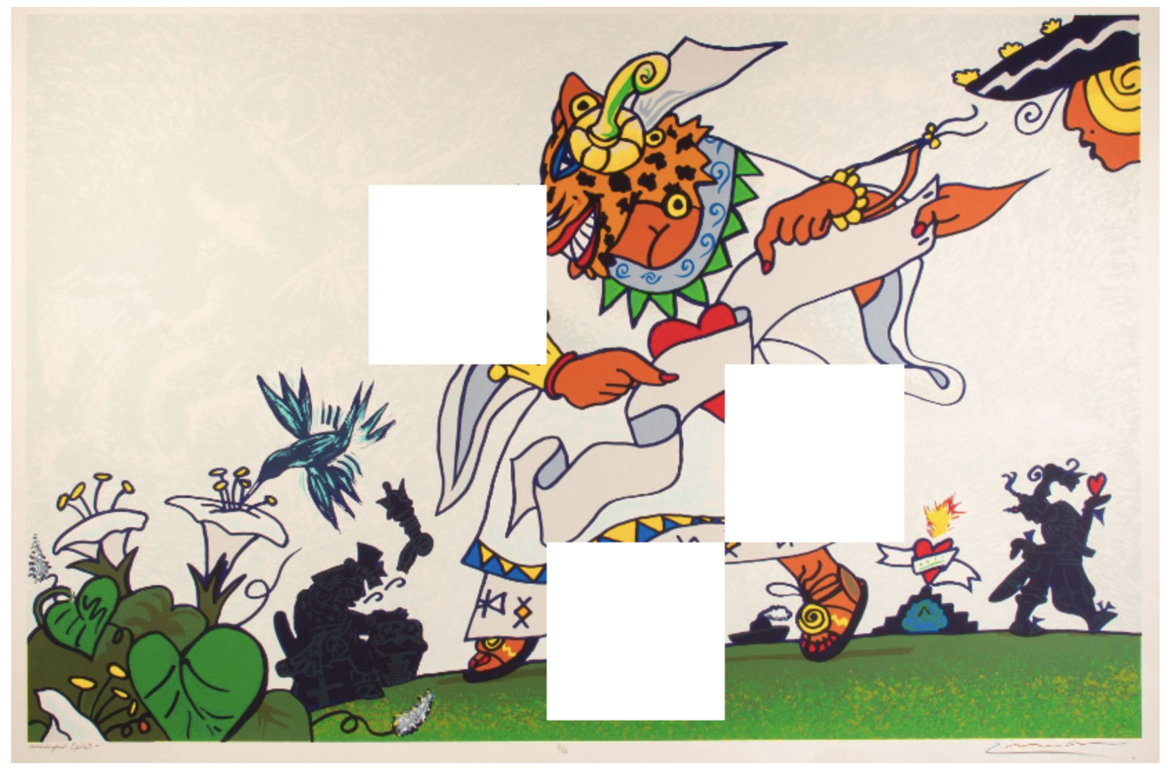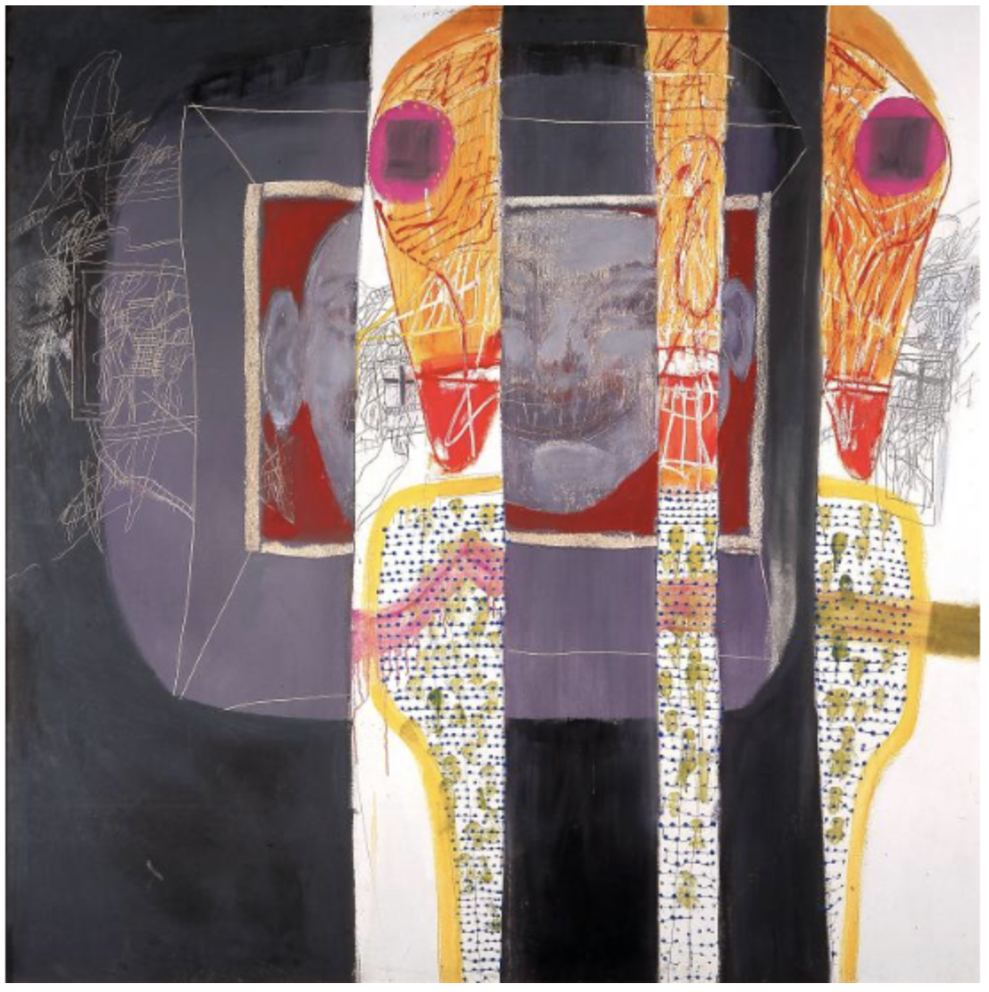 Distortions: the TV a mirror, a work of art marked tragicomedy. Sad laughter in grayscale made color. Swirling pink pupils the shape of square portals; what we see is so fantasy escape––enough to keep our gaze mesmerized into inaction.